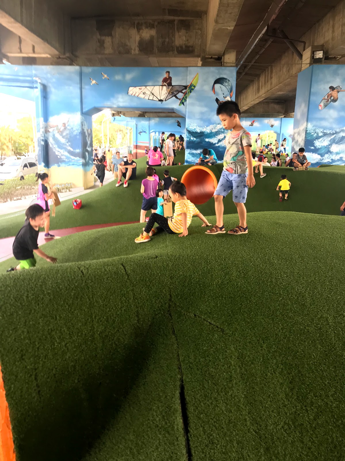 這片山坡相當平穩,幾乎每個小朋友都在這斜坡跑上跑下的.