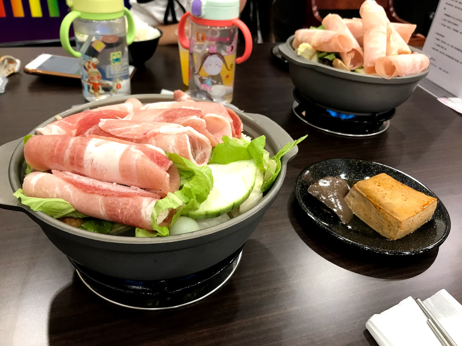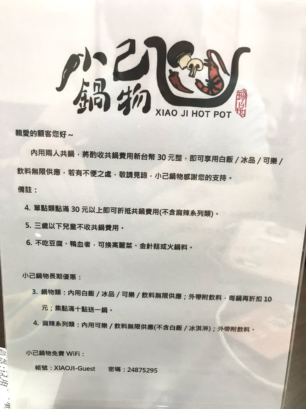 這時候我看到桌上的"溫馨提醒",不吃豆腐、鴨血者,可換...